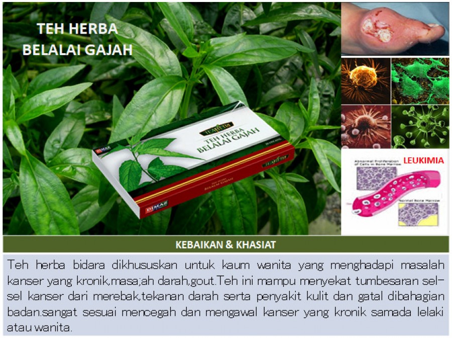 Hasil kajian yang dibuat, khasiat belalai gajah dikhususkan untuk membantu kaum wanita yang menghadapi masalah kanser kronik, masalah darah dan gout. Ia juga mampu membantu menyekat tumbesaran sel-sel kanser dari merebak, tekanan darah serta penyakit kulit dan gatal dibahagian badan, sangat sesuai mencegah dan membantu merawat kanser.